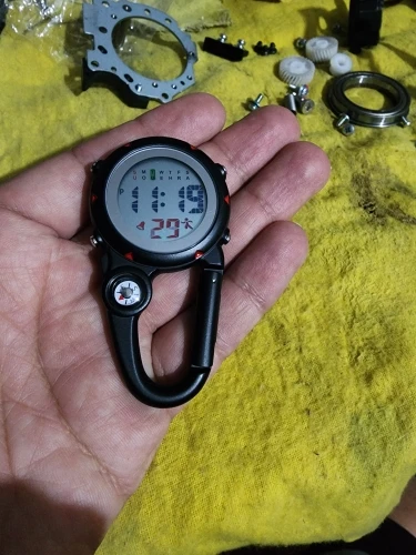 Super watch, it can be clipped to pants, the backpack has a backlit dial and a mini compass. I recommend the purchase and the seller to everyone.